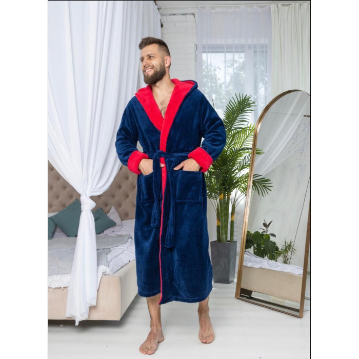 Чоловічий темно-синій махровий халат з капюшоном розміри 46-56