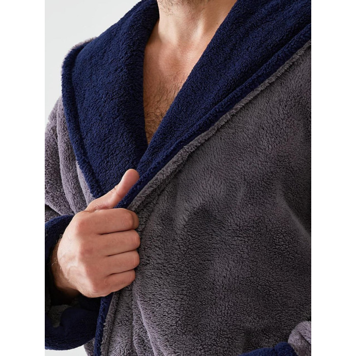 Чоловічий махровий халат на запах колір графіт розміри 52-56