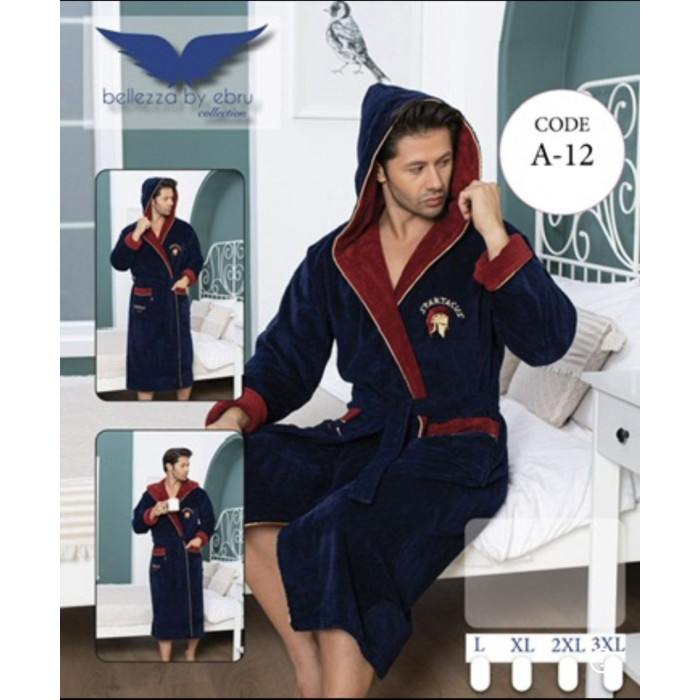 Чоловічий махровий халат з капюшоном колір синій розміри 46-58