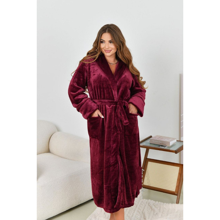 Махровий жіночий халат на запах із капюшоном колір бордо розміри 46-60
