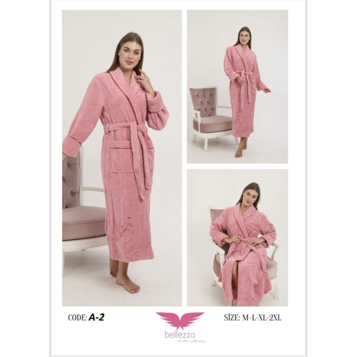 Жіночий махровий халат рожевий розміри 44-56 арт. 4058