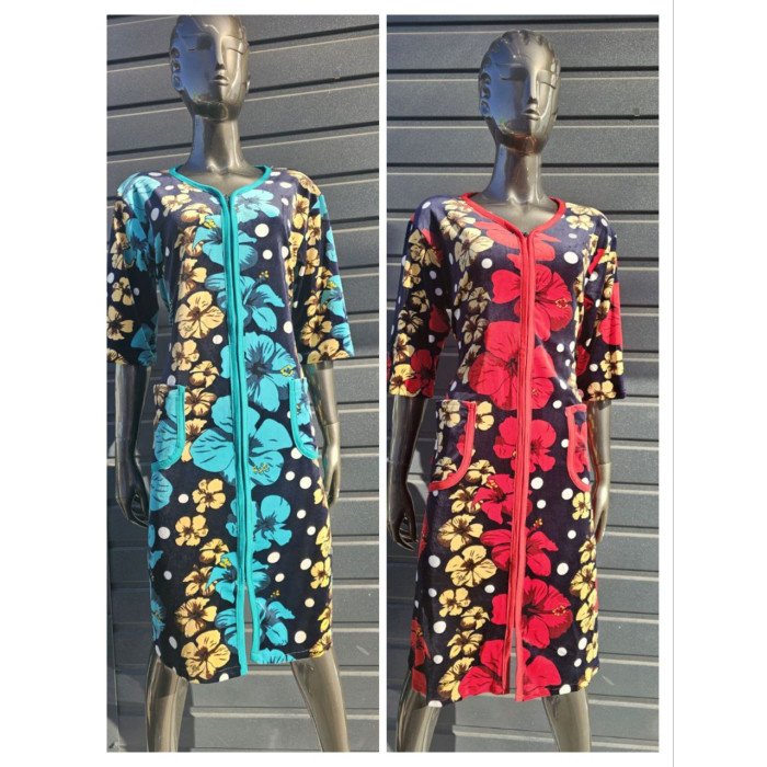 Стильний, зручний та якісний жіночий велюровий халат на блискавці.