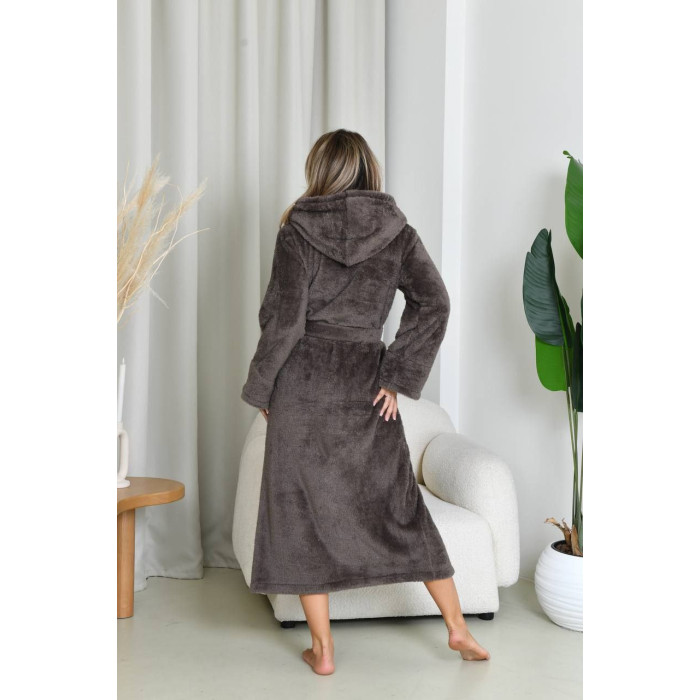Жіночий махровий однотонний халат великого розміру від 44-58 колір коричневий арт.4047