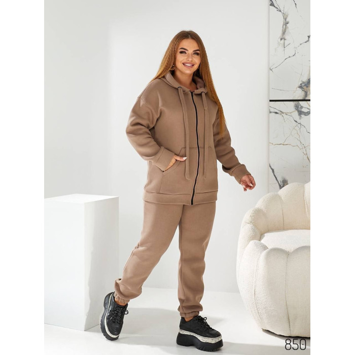 Жіночий спортивний костюм на флісі худі на блискавці розміри 48-58 арт.4071 бежевий
